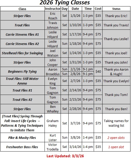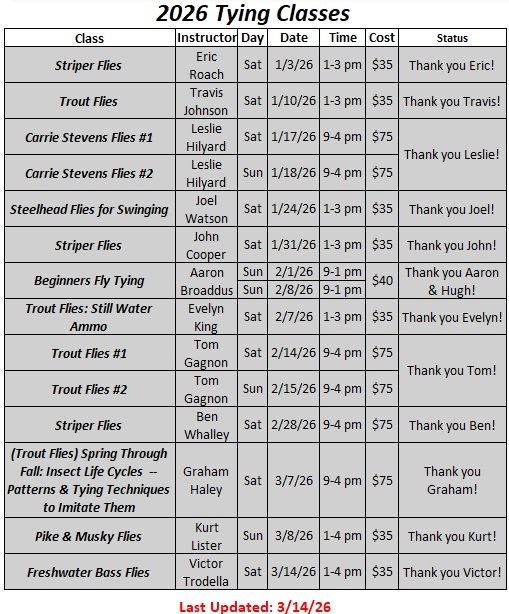 Please note the following information concerning our Full Day Tying Classes: