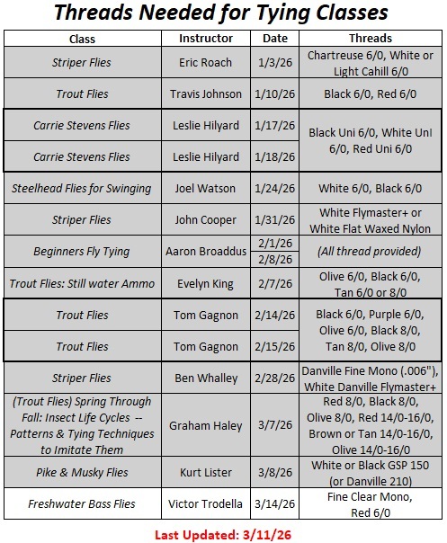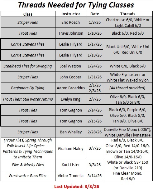 - Students must have at least a basic knowledge of fly tying to participate